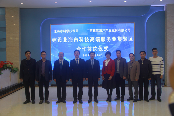 3月26日下午,北海市科學技術局與廣西正五海洋產業(yè)股份有限公司在正五北部灣海洋科技創(chuàng)新港一樓大廳簽訂《北海市科技高端服務業(yè)聚集區(qū)戰(zhàn)略合作協(xié)議》。參加簽約儀式的有市科技局領導班子成員,各科室負責人及北海市科技信息研究所干部職工、正五集團董事長黃禮雄、集團副總裁榮培彥及正五公司各部門負責人等共計30余人。