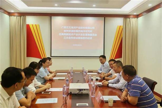 2023年12月12日,在北海高新區(qū)的積極推動下,自然資源部第四海洋研究所、北海高新區(qū)管委會和廣西正五海洋產(chǎn)業(yè)股份有限公司在正五創(chuàng)新港舉行三方合作協(xié)議簽訂儀式。